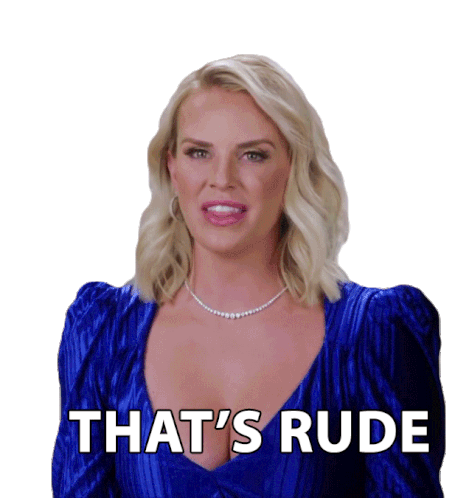 Whitney Rose from Real Housewives of Salt Lake City reacts with a firm 'That's Rude' expression.