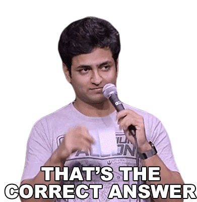 Comedian Kenny Sebastian points while saying "That's The Correct Answer" in this reaction sticker.