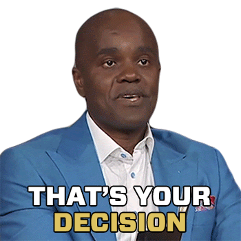 Wes Hall, a businessman from Dragons' Den, states 'THAT'S YOUR DECISION' with a serious expression, offering a definitive response.