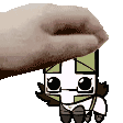 A cartoon hand carefully places a green Castle Crashers OC character onto a blue one, showcasing a fun interaction.