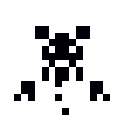 Piggo, the pixel art character from The Bug Tower Of Doom, waves with pink eyes and a heart.