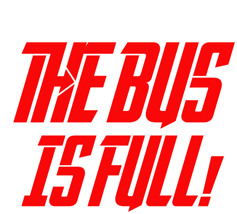 An animated sticker featuring the phrase 'The Bus Is Full' with a playful bouncing effect on a clean white background.