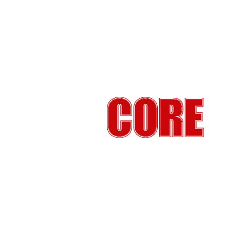 Dynamic red 'CORE' text sticker, representing the energy of Crossfit, possibly from Athens.