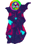 A pixel art animated sticker featuring 'The Endless Empty Tee' character, depicted with a vibrant rainbow halo and dark robes.