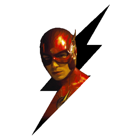 Ezra Miller as The Flash, with a lightning bolt symbol, from The Flash movie. Features Barry Allen.
