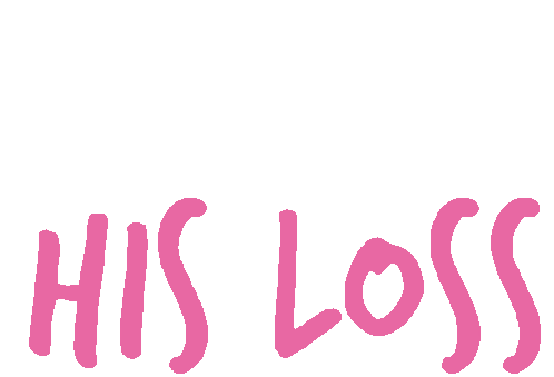 Sophia and Cinzia's 'His Loss' sticker from The Girls Bathroom podcast, featuring pink text and a playful message.