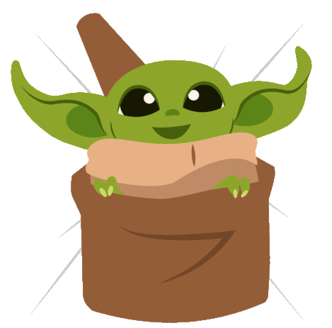 Grogu (Baby Yoda) peeking out of his satchel, a cute animated sticker from The Mandalorian series.