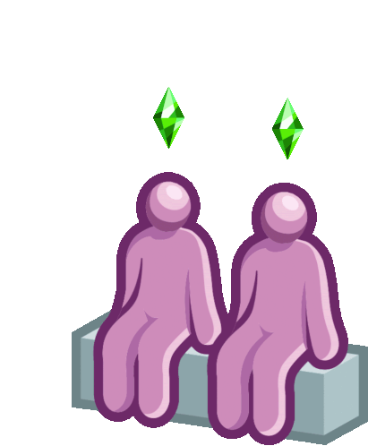 Two iconic Sims 4 characters, identified by their green plumbobs, sit together in this friendly sticker, perfect for showing connection.