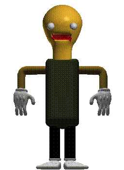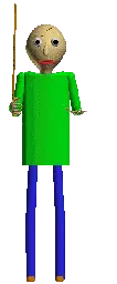 Baldi, the iconic character from Baldi's Basics, is animated in his signature style, referencing 'The Test' from the game.