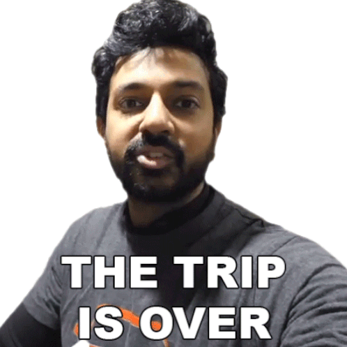 Faisal Khan gestures while wearing a shirt that boldly declares 'THE TRIP IS OVER', signaling an end.