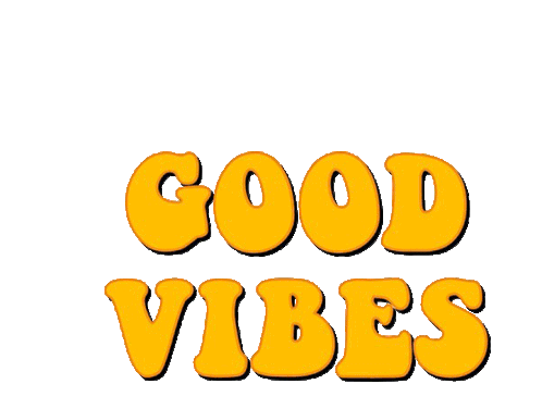 An animated sticker by Thegifyguy featuring the words 'GOOD VIBES' in a cheerful, retro yellow font.