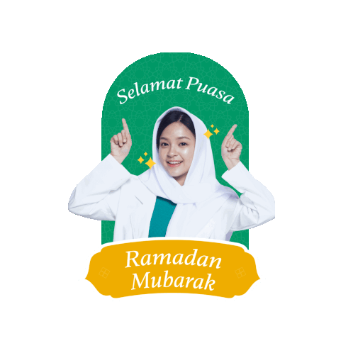 Ecaaura from Theraskin wishes 'Selamat Puasa' and 'Ramadan Mubarak' with a joyful smile and pointing gesture.