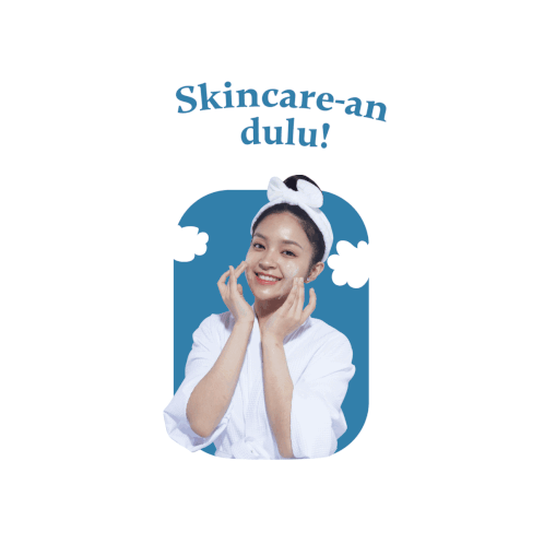A smiling woman in a white bathrobe applies skincare products, surrounded by Theraskin bottles, with the text "Skincare first!"