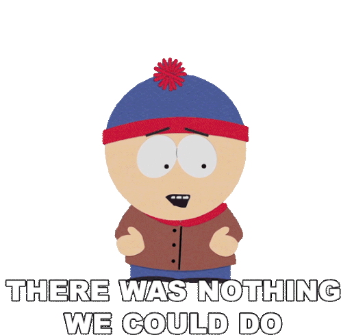 Stan Marsh from South Park looks sad and shrugs, expressing helplessness with the phrase 'There was nothing we could do.'