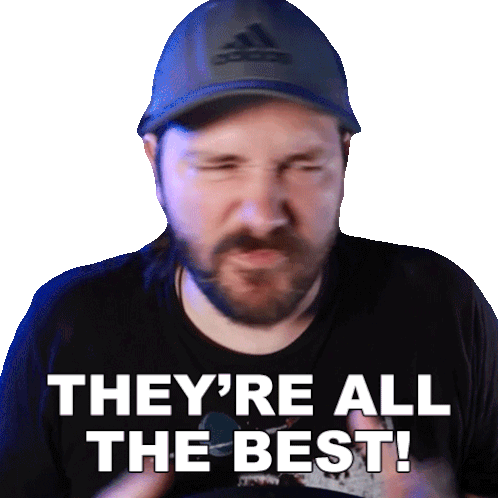 Michael Kupris emphatically declares 'They're all the best!' with an open mouth, expressing strong approval and enthusiasm.