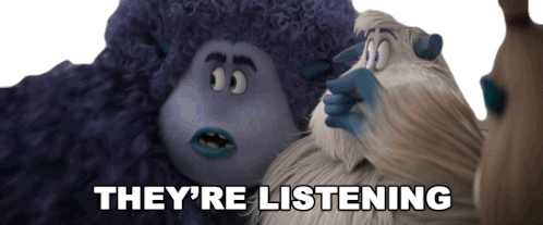 Migo whispers to Gwangi, warning 'They're Listening' in a scene from Smallfoot.