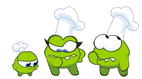 Om Nom sticker featuring the beloved character in a thoughtful pose, rubbing its chin while pondering a solution.