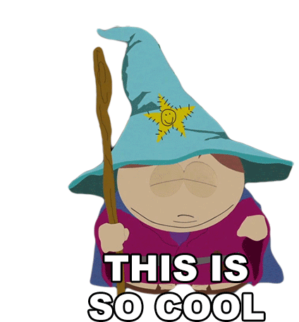 Eric Cartman, dressed as a wizard, expresses excitement with the phrase 'This Is So Cool' in this animated sticker.