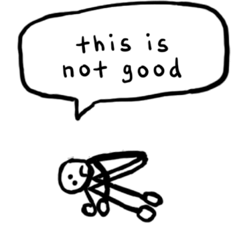a drawing of a person with a speech bubble that says `` this is not good ''