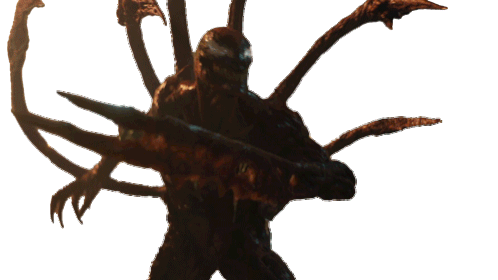 Carnage, the monstrous symbiote, stands ready to fight with menacing tendrils and sharp claws, embodying a threatening presence.