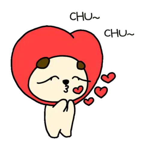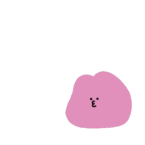 A cute pink blob character blows a kiss, with a small heart on its cheek that grows and shrinks, expressing love.