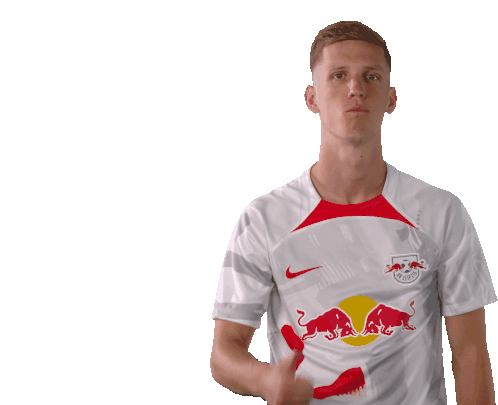 Dani Olmo, wearing his RB Leipzig jersey, gives a clear and positive thumbs up gesture.