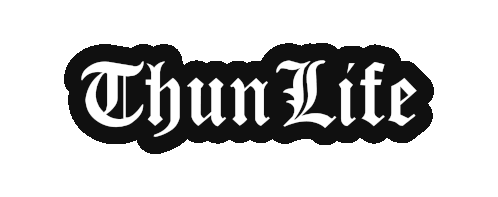 A black and white logo featuring the text 'Thun Life' in a gothic font, referencing the city of Thun, Switzerland.