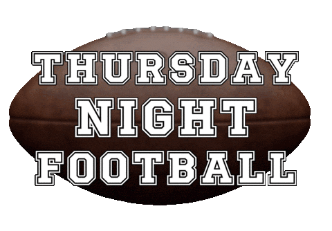 A classic brown American football prominently displaying the text 'Thursday Night Football' in bold, outlined letters.