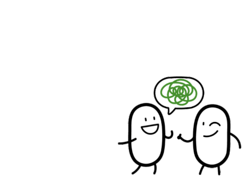 A simple animated sticker featuring two stick figures, one expressing a 'GOOD IDEA!' in a speech bubble, reminiscent of Tic Tac branding.