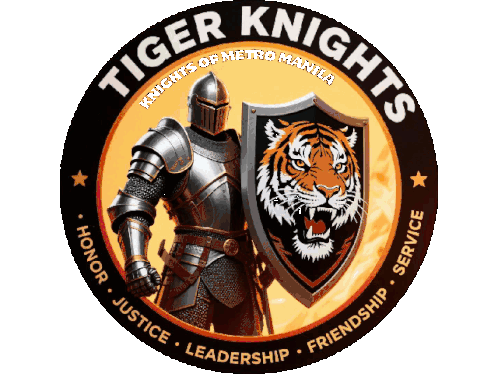Dynamic animated sticker featuring a knight, a roaring tiger, and the 'Tiger Knights of Metro Manila' logo.