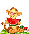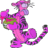Tigger from Winnie the Pooh changes colors while holding a dripping honey pot, looking dazed.