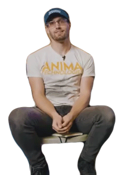 Clint Jones from Corridor Crew sits, tilting his head slightly, wearing a cap and glasses, with hands clasped.