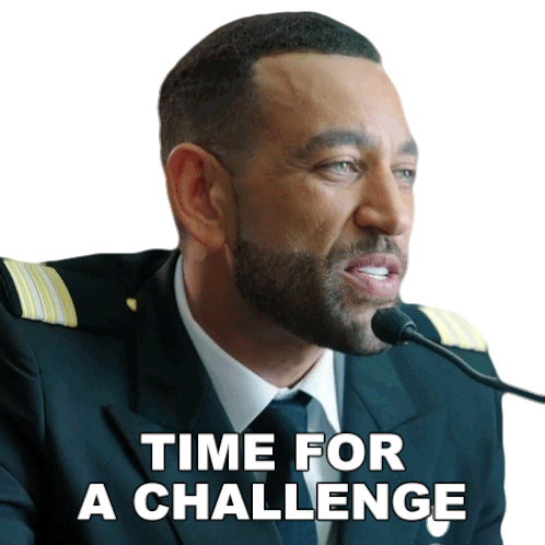 Matt Mitcham, in a captain's uniform, declares 'Time For A Challenge' with a determined expression.