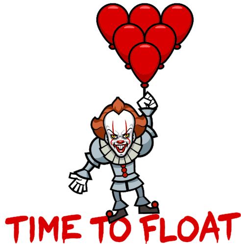 Pennywise the clown from It Chapter Two floats menacingly with a bunch of red balloons, inviting you to 'Time To Float'.