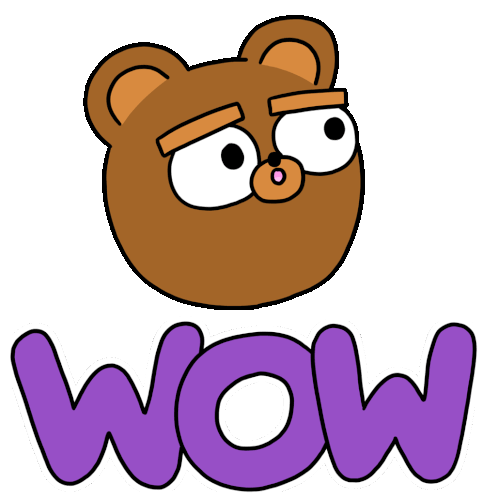 A cute cartoon bear from Timothy Winchester's Littlest Friends, with big eyes, expressing 'WOW' in surprise or amazement.