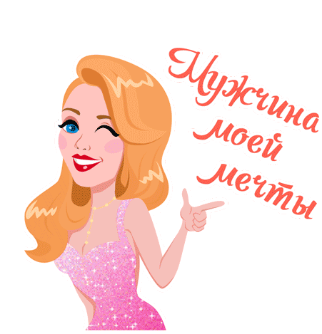 Tina Karol winks and points, expressing 'Man of my dreams' with a sparkling pink dress and vibrant red hair.