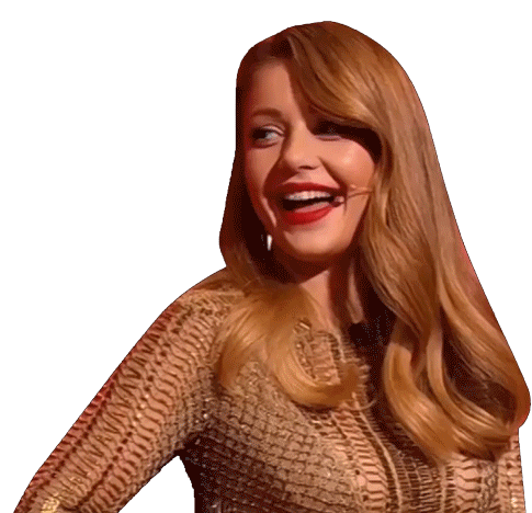 Ukrainian singer Tina Karol laughing joyfully, with her signature long hair and a shimmering golden top.