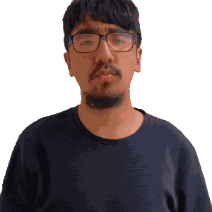 a man with glasses and a beard wearing a black shirt