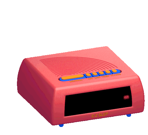 A retro 3D alarm clock blinks its display, perfect for when you're Tired Af and need to wake up. Featuring Janet Mac.