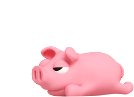 Rosa The Pig, a pink rubber toy, lies on its side, exhaling dramatically to show extreme tiredness and exhaustion.