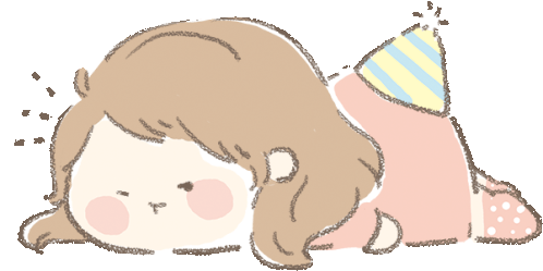 Mini Hana, a cute girl, is tired and sleeping, wearing a party hat. Perfect for expressing exhaustion.