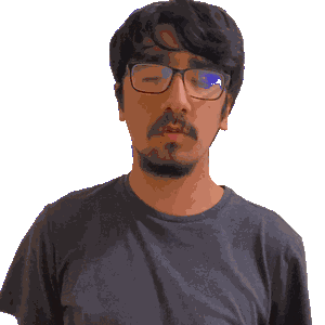 a man wearing glasses is making a funny face with his mouth open