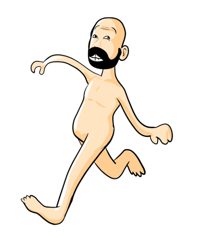 a cartoon of a naked man with a beard is running