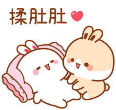Cute Tkthao219 Bubududu bunnies, one white and one brown, affectionately rub tummies with a heart. Sweet and comforting.