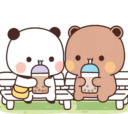 Tkthao219 Bubududu panda bears enjoying bubble tea together on a park bench.
