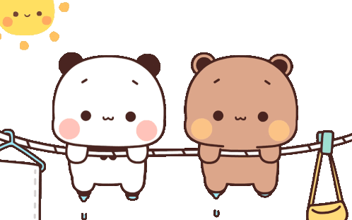 Tkthao219 Bubududu bears, a white panda and a brown bear, playfully hanging on a clothesline under the sun.