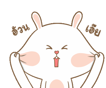 A cute Tkthao219 bunny squeezing its chubby cheeks, making a puckered face, with Thai text 'Hey, fatty!'.