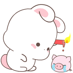 Tkthao219's cute bunny holds a lit candle, comforting a small, crying pink pig. A sweet moment of empathy.