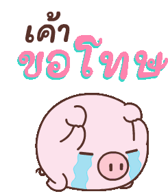 A cute pink pig character, possibly from Tkthao219, crying profusely with tears and saying "I'm sorry" in Thai.