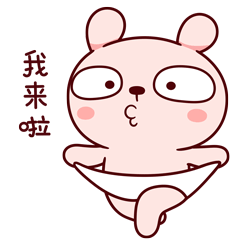 Tkthao219's adorable pink bear character waddles in, exclaiming 'I'm coming!' in Chinese, with a playful pout.